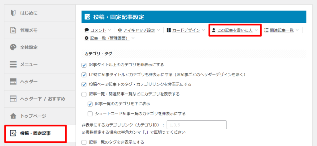 AFFINGER管理>投稿・固定記事>この記事を書いた人 から「プロフィール情報にhtmlタグを許可する」にチェックを入れる